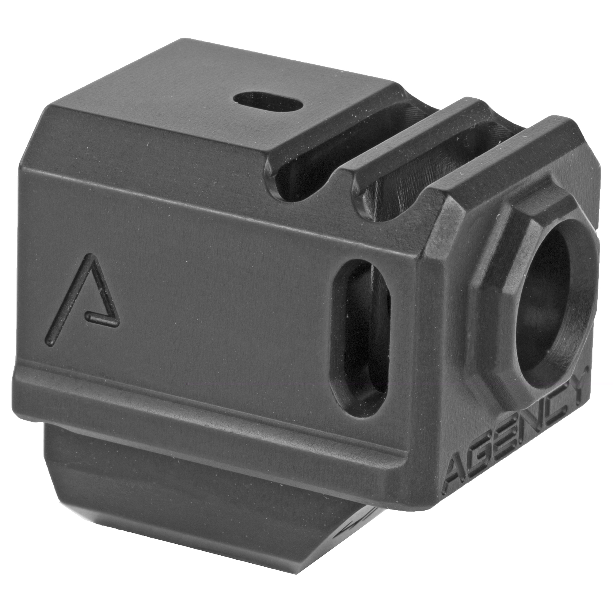The Agency Arms 417 Compensator is threaded with the standard 1/2×28 thread pitch. It features a 2 chamber design (2 vertical ports and 2 side venting ports. It is designed to utilize the OEM recoil spring assembly and it also features a front sight hole, allowing you to transfer your existing front sight from your slide to the comp. Compatible with the 17″19 and 34.