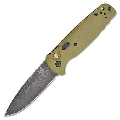 Benchmade 940 Osborne Folding Knife 3.4″ S30V Satin Plain Blade AXIS/Crossbar Lock – Green Aluminum