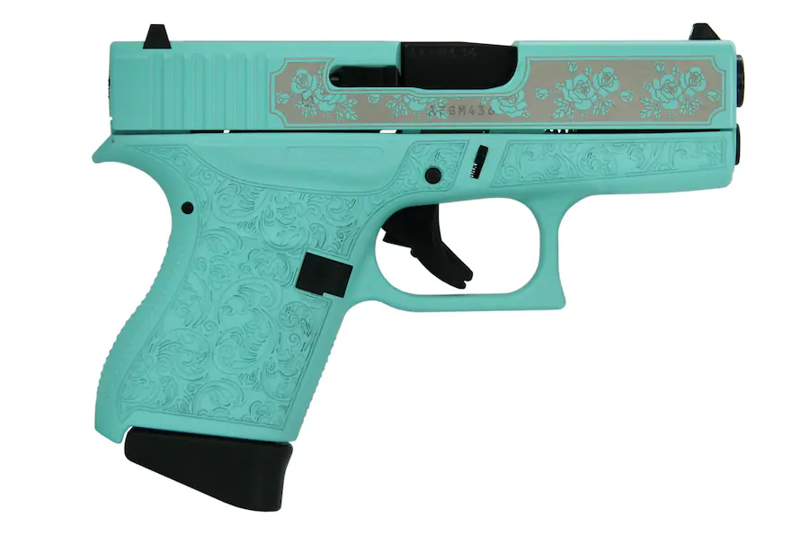 The GLOCK G43 TIFFANY BLUE has been a popular choice for law enforcement and civilian shooters alike for years. This pistol is a true workhorse, capable of handling just about any situation you can put it in.