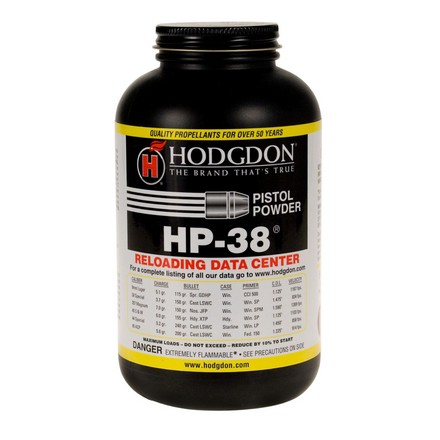 Hodgdon Powder offers the largest selection of quality smokeless propellants for any reloading application. Hodgdon HP38 is a spherical powder that is great for low velocity and mid-range target loads in the .38 Special, .44 Special, and 45 ACP. This high energy powder provides economy in loading.
