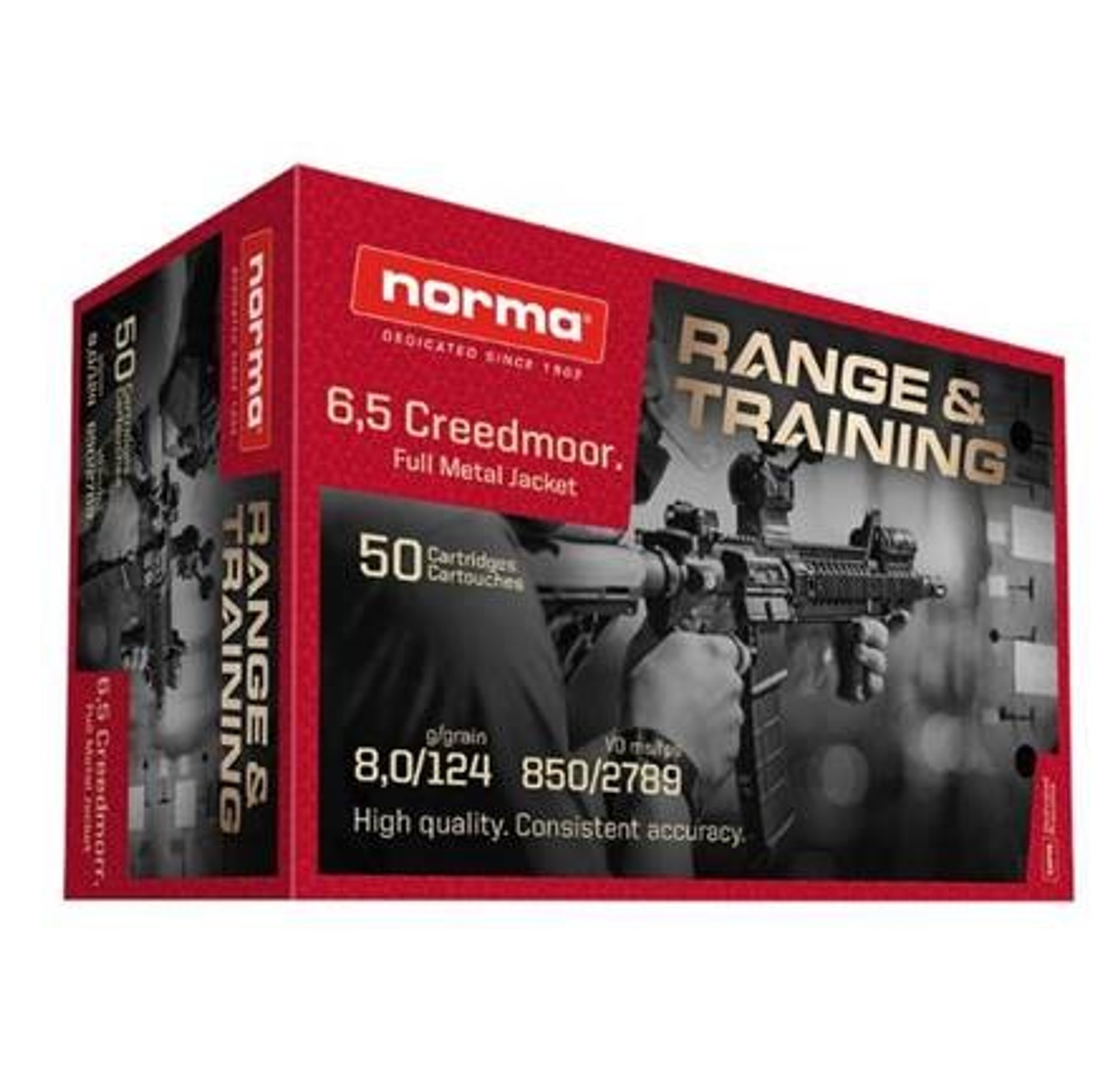 Norma Range and Training 6.5 Creedmoor 124 grain FMJ Full Metal Jacket 50 rd box 500 rd case x 2 FREE SHIPPING (1000 rd case)