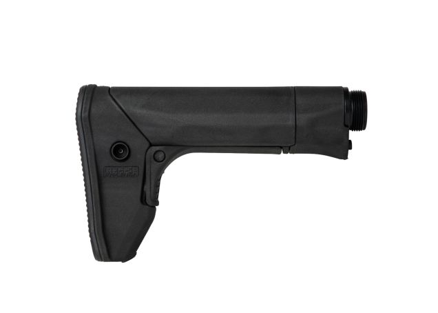 Introducing the RECC·E Carbine Stock by Reptilia®! After more than two years of development and testing, Reptilia is proud to announce the RECC·E Stock for AR15/M16 and AR10/SR25 pattern rifles. Designed at the request of a military end user, the RECC·E Stock features a constant cheek weld, ambidextrous QD sling attachment points, rubber buttpad, and a modular design that allows usage of a standard AR15 carbine buffer system, or A5/SR25 carbine buffer system by replacing the receiver extension (buffer tube) and forward portion of the stock. Weighing only 12.0 ounces including the proprietary AR15-length receiver extension, the RECC·E stock is the ideal lightweight solution for the entire spectrum of AR-pattern guns from compact to precision.