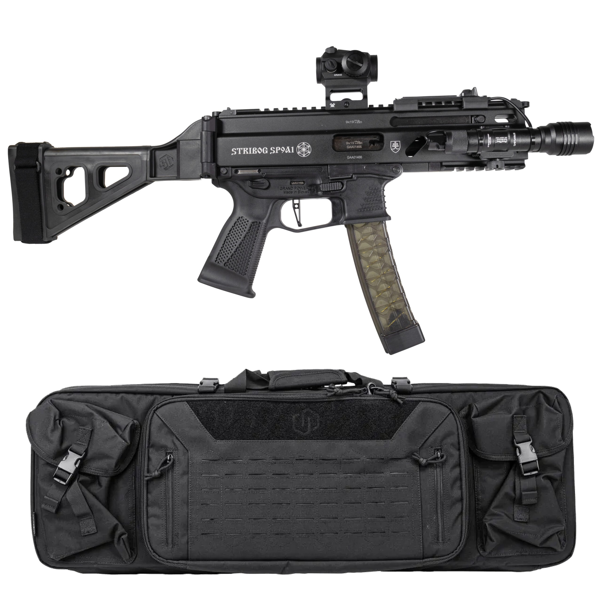Introducing the Shark Coast Stribog Battle Pack, the ultimate bundle for tactical enthusiasts and shooters seeking top-tier performance. This comprehensive package includes the formidable Stribog SP9A1 Pistol, renowned for its reliability and precision. Paired with the Vortex Crossfire Red Dot, you’ll experience enhanced accuracy and rapid target acquisition in any scenario. The Streamlight Rail Mount 2 adds powerful illumination to your setup, ensuring you’re prepared for low-light conditions. Additionally, the SB Tactical folding brace provides improved stability and control. To complete the bundle, we’ve also included a double rifle bag to transport your gear (model and color will vary). Equip yourself with the Shark Coast Stribog Battle Pack and elevate your tactical game to the next level.
