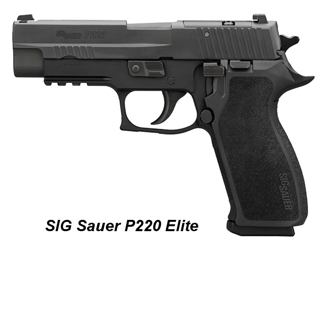SIG Sauer’s P220 ELITE, chambered in 45 ACP, is one of three iconic SIG ELITE series pistols featuring a Beavertail Alloy Frame with a Nitron Coated Stainless Steel Slide and front cocking serrations. Every Sig P220 Elite sports a manual safety along with Siglite Night Sights, a one piece Ergonomic Grip and a short reset trigger that are exclusive features on the Elite series firearms. Sig’s new P220 is equipped with two 8 round magazines.